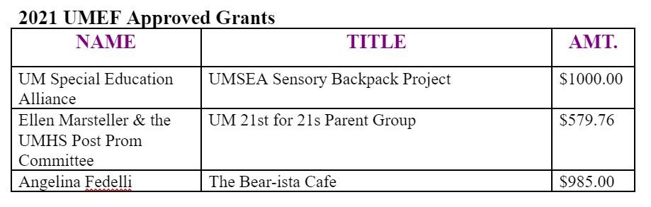 2021 UMEF Approved Grants